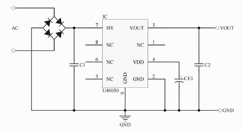 U40050 是一款緊湊型無(wú)電感設(shè)計(jì)的離線式 線 性 穩(wěn) 壓 器 。 U40050 固 定 輸 出 5V 電 壓 。 U40050是一種簡(jiǎn)單可靠的獲得偏置供電的離線 式電源解決方案。 U40050 集成了600V 功率MOSFET ,啟動(dòng) 控制電路,VDD電壓控制電路,低壓差穩(wěn)壓器 等。該芯片通過(guò)智能控制交流能量輸入以減小系 統(tǒng)損耗,提高系統(tǒng)效率,同時(shí)有效降低系統(tǒng)待機(jī)。 U40050集成有完備的帶自恢復(fù)功能的保護(hù) 功能:輸出短路保護(hù),輸出過(guò)載保護(hù),雷擊浪涌 保護(hù)和內(nèi)置過(guò)溫保護(hù)等。