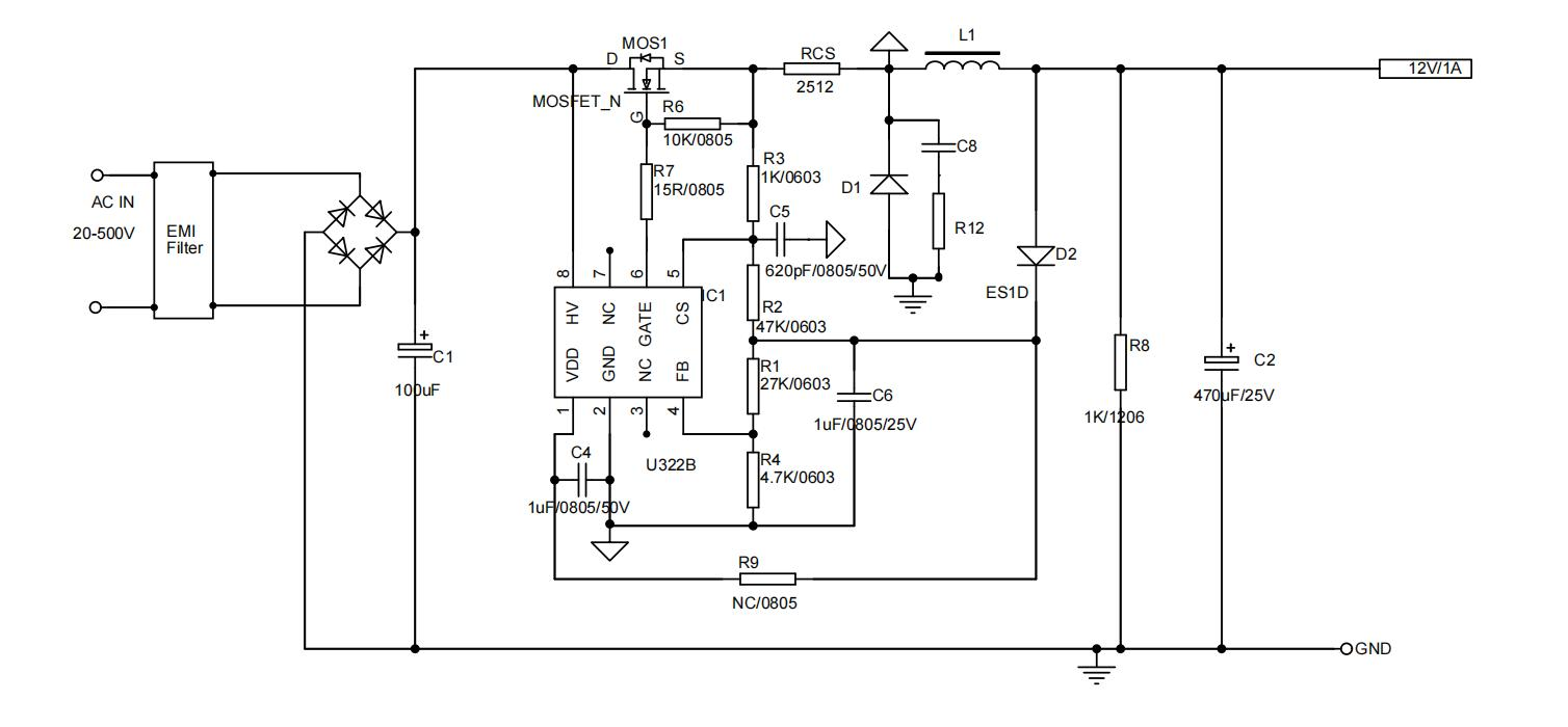 U322B是一款高性能低成本PWM控制功率器,適用于離線式小功率降壓型應(yīng)用場合,外圍電路簡單、器件個(gè)數(shù)少。同時(shí)產(chǎn)品內(nèi)置高耐壓MOSFET可提高系統(tǒng)浪涌耐受能力。與傳統(tǒng)的PWM控制器不同,U322B內(nèi)部無固定時(shí)鐘驅(qū)動MOSFET,系統(tǒng)開關(guān)頻率隨負(fù)載變化可實(shí)現(xiàn)自動調(diào)節(jié)。同時(shí)芯片采用了多模式PWM控制技術(shù),有效簡化了外圍電路設(shè)計(jì),提升線性調(diào)整率和負(fù)載調(diào)整率并消除系統(tǒng)工作中的可聞噪音。此外,芯片內(nèi)部峰值電流檢測閾值可跟隨實(shí)際負(fù)載情況自動調(diào)節(jié),可以有效降低空載情況下的待機(jī)功耗。U322B集成有完備的帶自恢復(fù)功能的保護(hù)功能:VDD欠壓保護(hù)、逐周期電流限制、輸出過壓保護(hù)、過熱保護(hù)、過載保護(hù)和VDD過壓保護(hù)等。