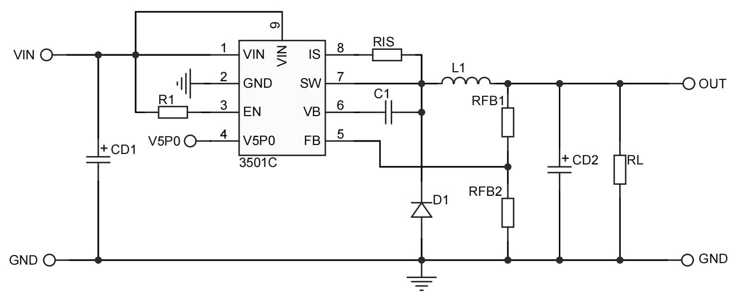 ●集成高壓啟動電路●集成5.3V基準電路●內置60V/29 mΩ MOSFET●內置自引導二極管●滯后控制:無補償●130KHz開關頻率●PWM調光控制輸入降壓應用●集成高側MOSFET的短路保護(SCP)●低靜態(tài)電流●熱關閉●可在帶有暴露焊盤的ESOP-8封裝中使用